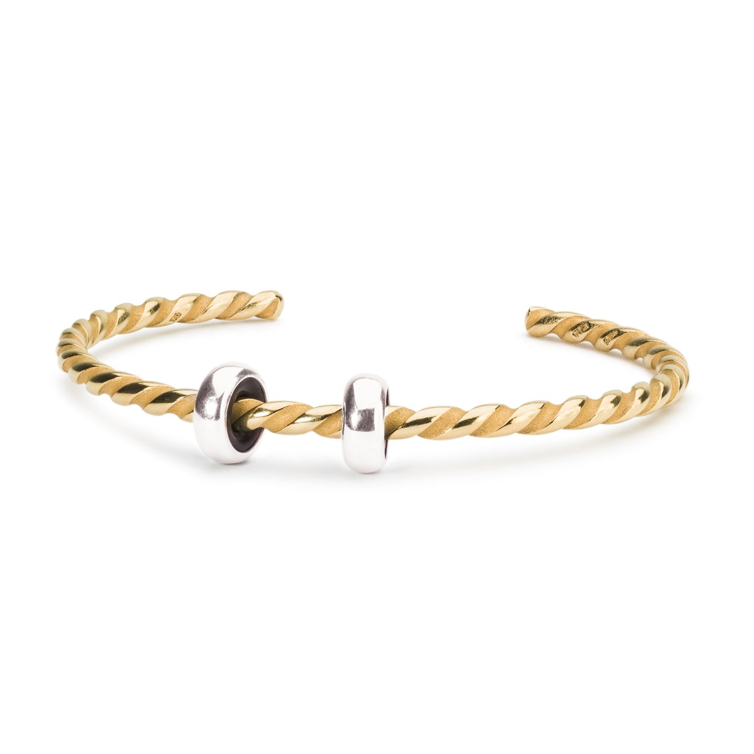 Take a step into the universe of Trollbeads. Start your journey with a Twisted Gold Plated Bangle and 2 x Silver Spacers. Remove the spacers to place beads in between.