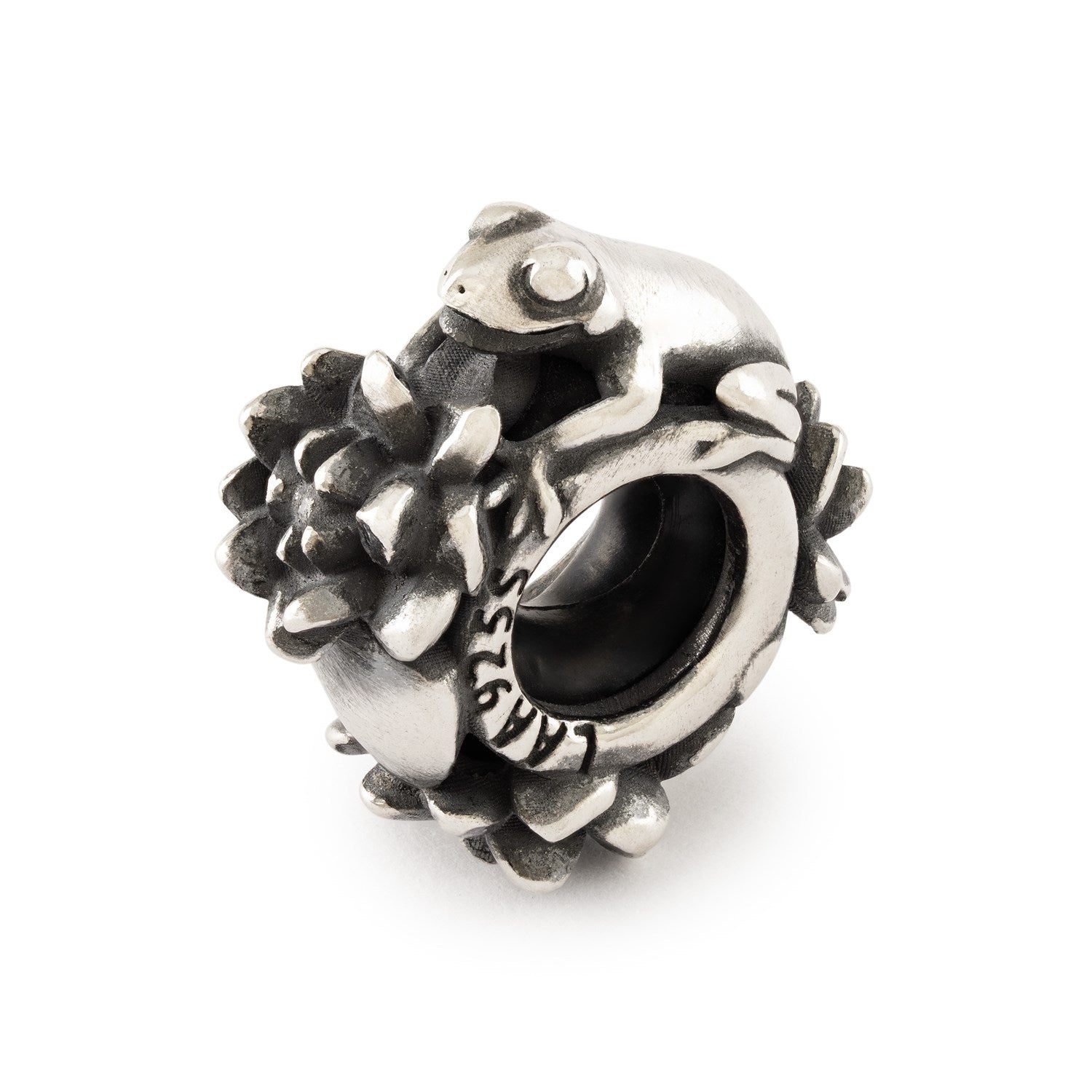 This spacer is both practical and a joyfull eyecatcher. Crafted in Sterling silver with close attention to every detail, the spacer is truly soemthing special. Adorned with an adorable little frog and Water Lily Flowers, this spacer is the essence of springtime by the lakeshore. Use the spacer to keep your beads from sliding off your bracelet or to make sure they stay in place for your unique jewellery creations. One thing is certain; it is hard not to smile when seeing this little treasure.