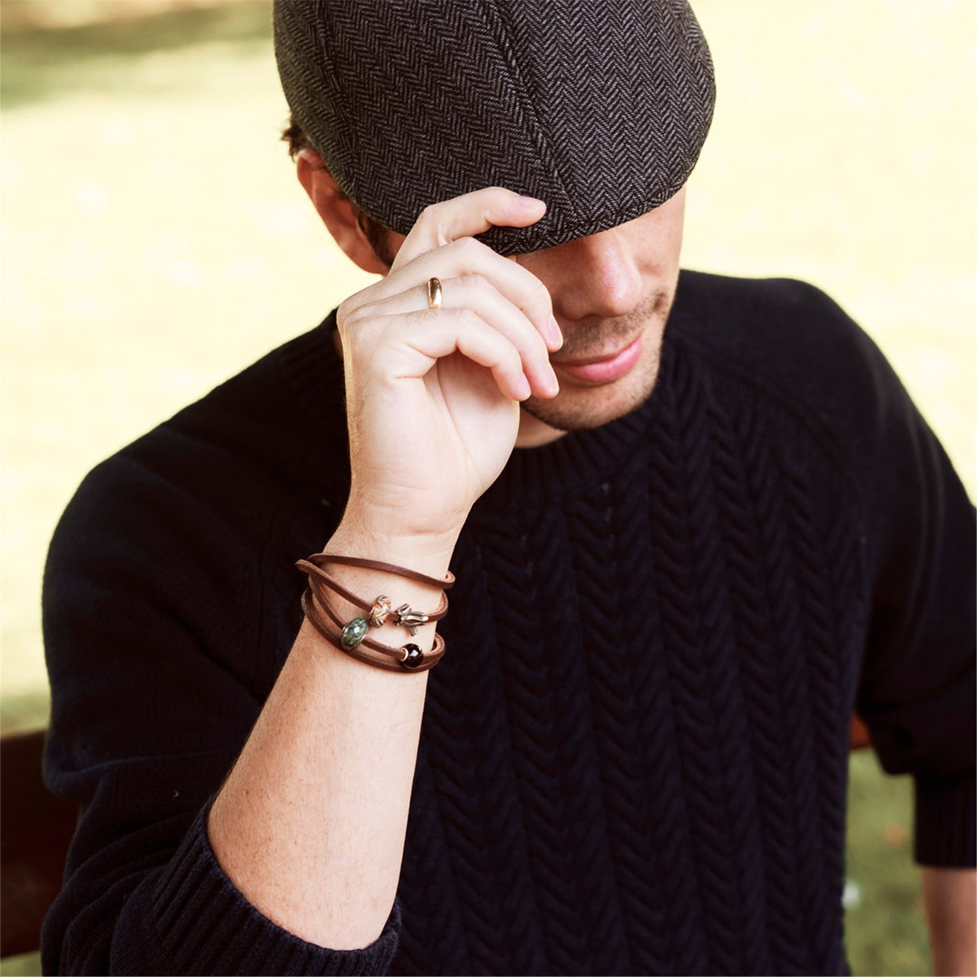 This supple brown bracelet has been crafted from two strips of genuine leather. It comes in a generous length that will wrap around your wrist twice. It's finished with a Sterling silver Lock of Wisdom. A must have in your everyday lineup. The bracelet comes in two sizes.