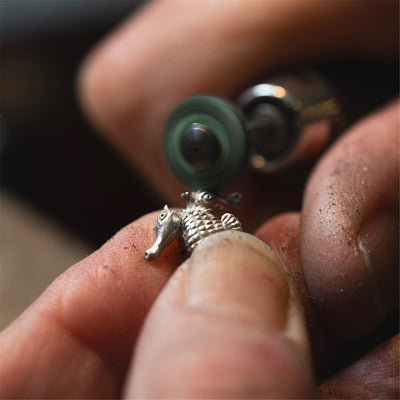 This bead celebrates the wonders of nature and a father's devotion. In the magical world of seahorses, fathers have a very special role! Instead of mothers, male seahorses carry and care for the babies. They keep them safe and provide everything they need to grow strong. When the time is right, the baby seahorses are ready to explore the ocean.